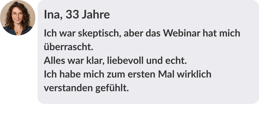 Im Autowebinar bekommst du einen Einblick in diese Arbeit und kannst in Ruhe spüren, ob dieser Weg für dich stimmig ist.